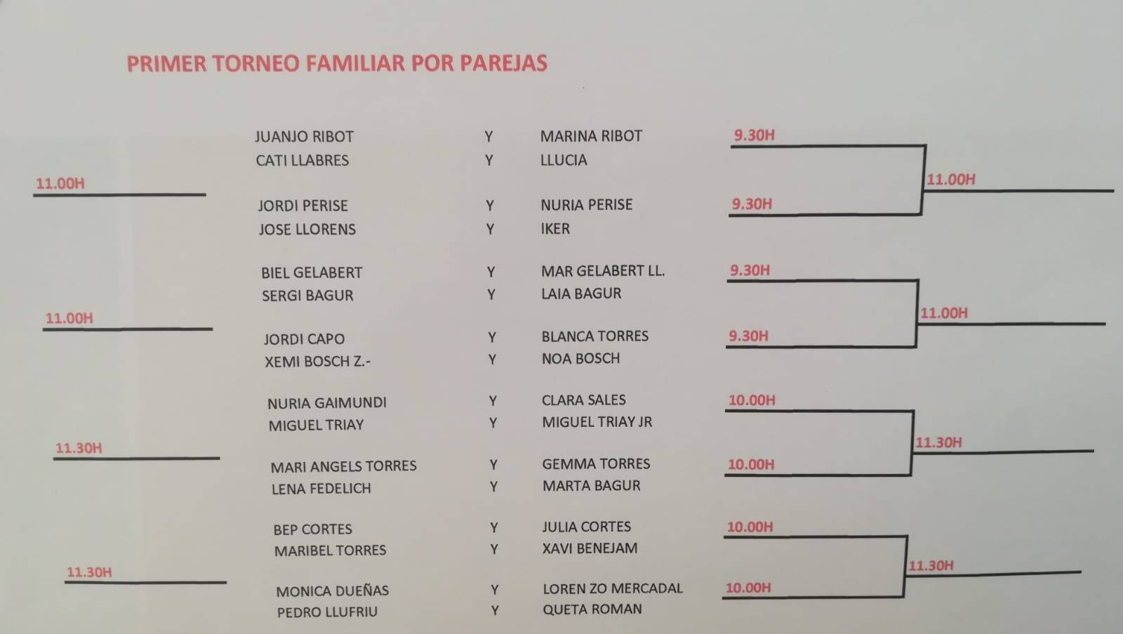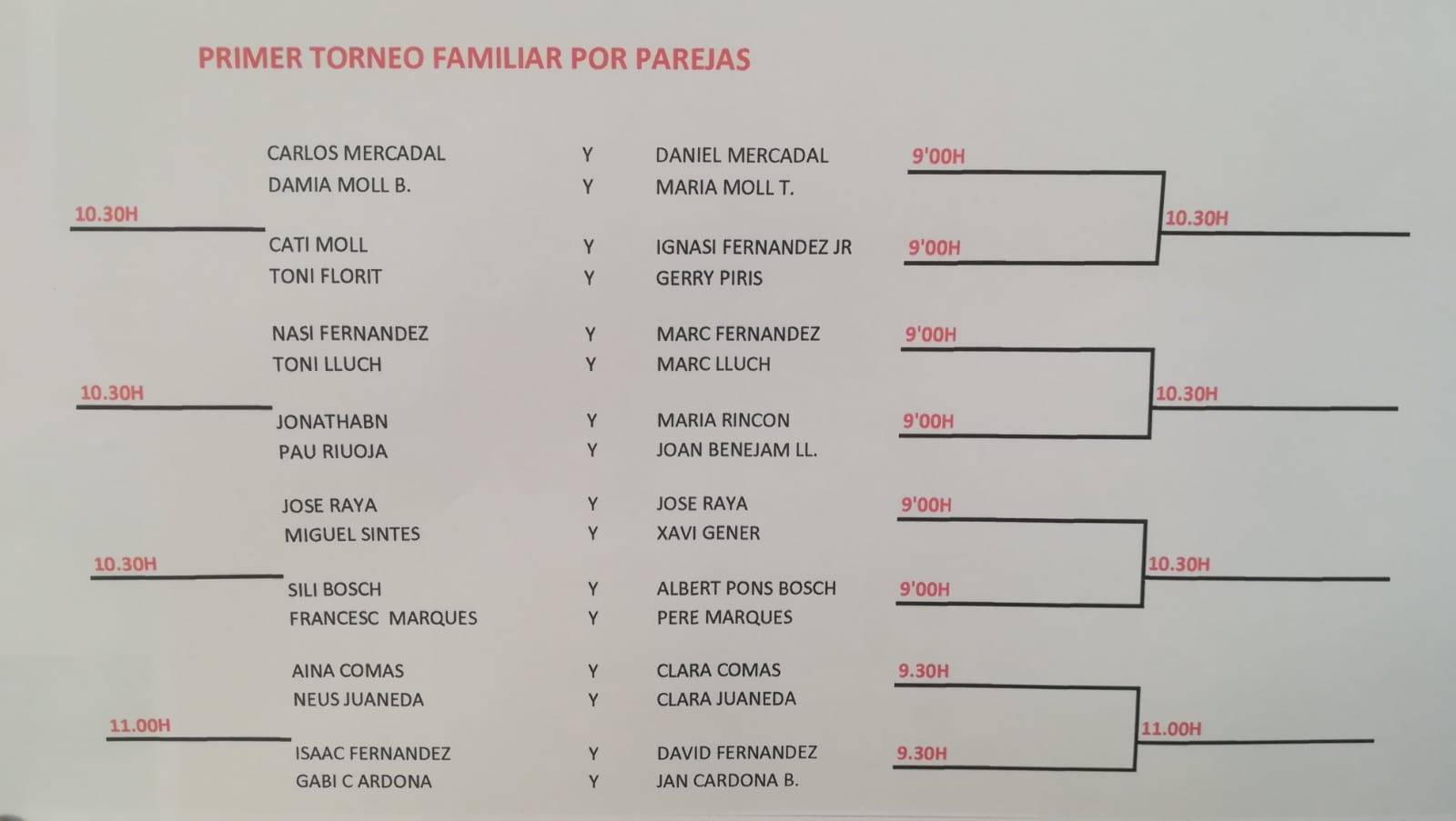 Cuadros y horarios para el Torneo de Dobles Familiar 16 Febrero 2020